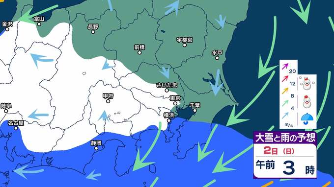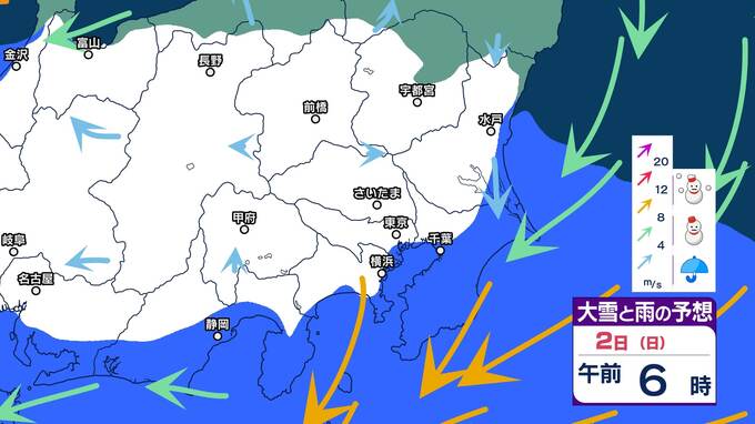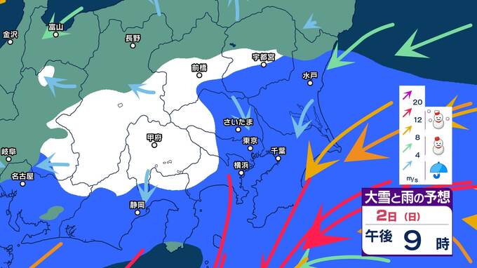 【最強寒気襲来】2日(日)は関東平野部でも雪の可能性【大雪と雨のシミュレーション3日まで】