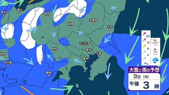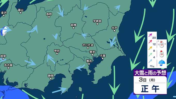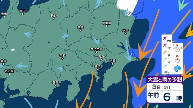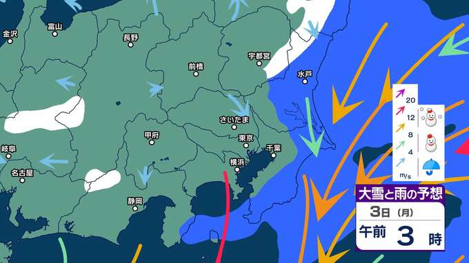 【最強寒気襲来】2日(日)は関東平野部でも雪の可能性【大雪と雨のシミュレーション3日まで】