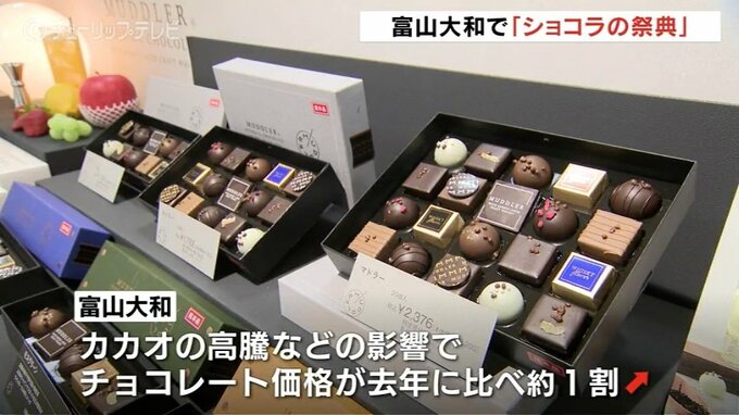 富山大和によりますと、カカオの高騰などの影響で、チョコレートの価格が去年に比べて1割ほど値上がりしたということです。