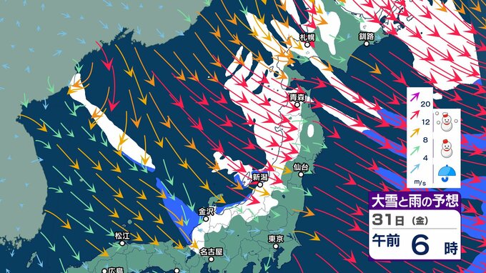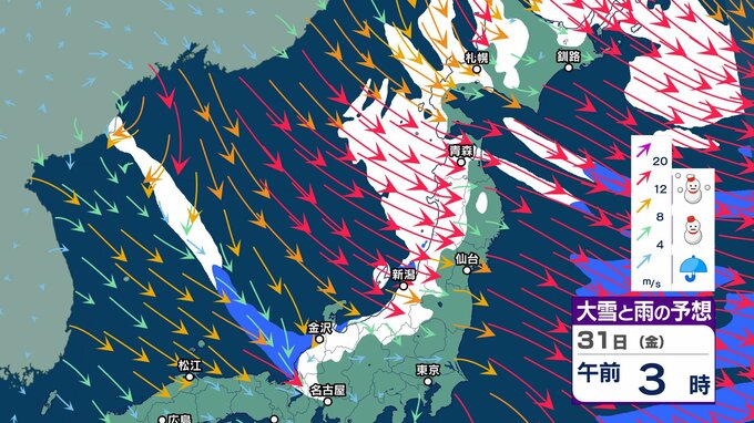 ニュースクリップ 北から南まで “すっぽり” 覆う寒気…5日に “もう一段強い寒気” 長居する見込み【雪と雨と風のシミュレーション】日本海側も大雪が長引き平地も積雪へ 2025年1月30日(木) 20:27 国内 天気 雪と雨と風のシミュレーション 31日(金)