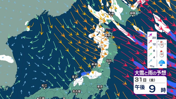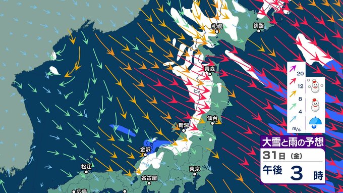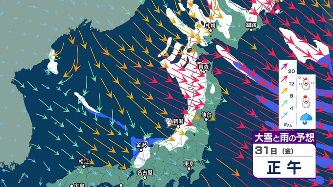 ニュースクリップ 【気象情報】北陸地方は海上を中心に雪を伴って強い風、海はしけが続くところがある見込み 高波に警戒【雪と雨と風のシミュレーション】 2025年1月31日(金) 09:52 国内 天気 雪と雨と風のシミュレーション 31日(金)