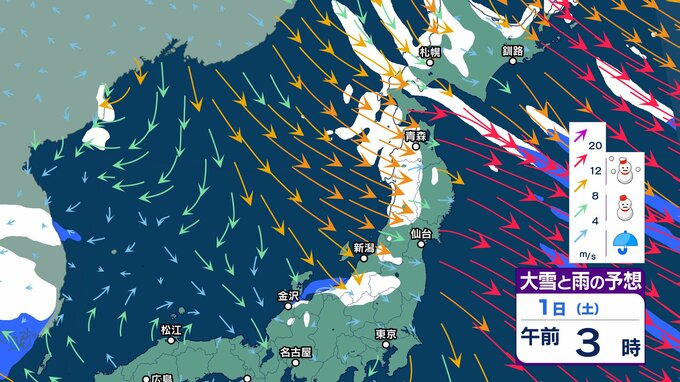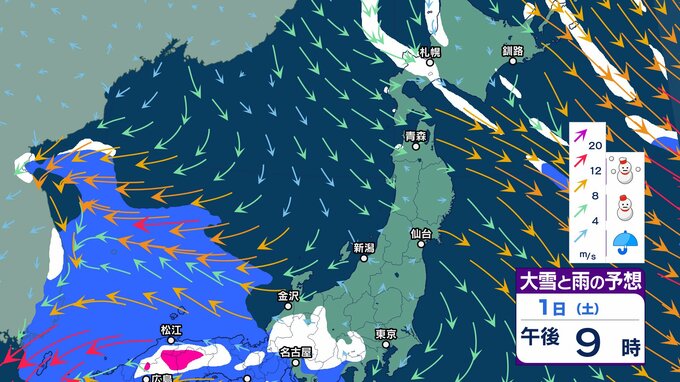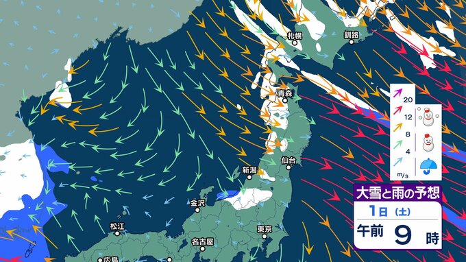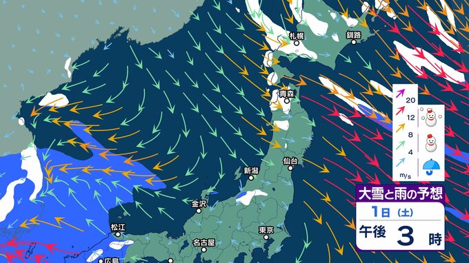 ニュースクリップ 【気象情報】北陸地方は海上を中心に雪を伴って強い風、海はしけが続くところがある見込み 高波に警戒【雪と雨と風のシミュレーション】 2025年1月31日(金) 09:52 国内 天気 雪と雨と風のシミュレーション 1日(土)