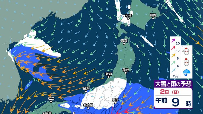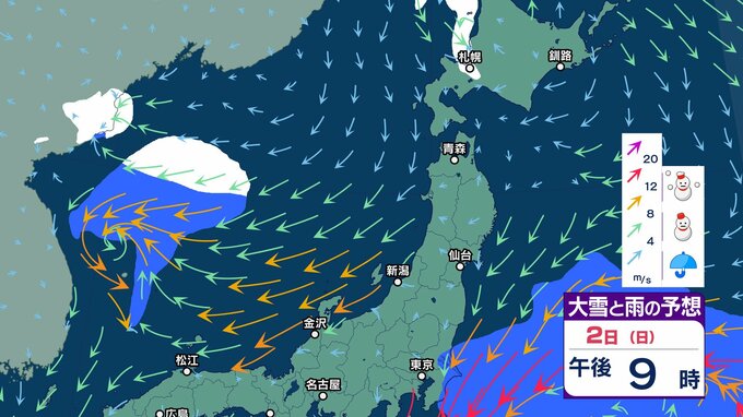 ニュースクリップ 【気象情報】北陸地方は海上を中心に雪を伴って強い風、海はしけが続くところがある見込み 高波に警戒【雪と雨と風のシミュレーション】 2025年1月31日(金) 09:52 国内 天気 雪と雨と風のシミュレーション 2日(日)