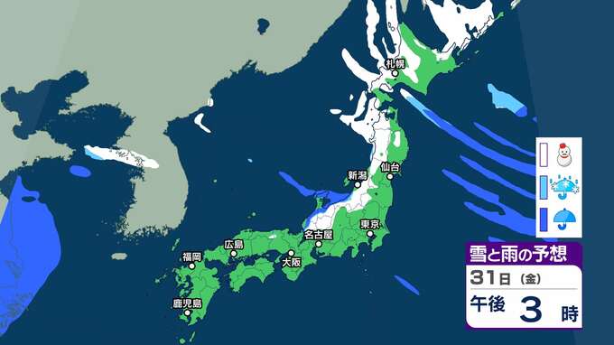 【最強寒波】2月4日頃から北~西日本にかけて日本海側を中心に平地でも大雪となるおそれ 警報級の大雪となる可能性も【雪雨シミュレーション】 2025年1月31日(金) 11:08 国内 暮らし・マネー 31日(金)雪雨シミュレーション