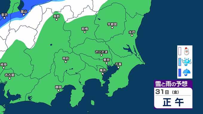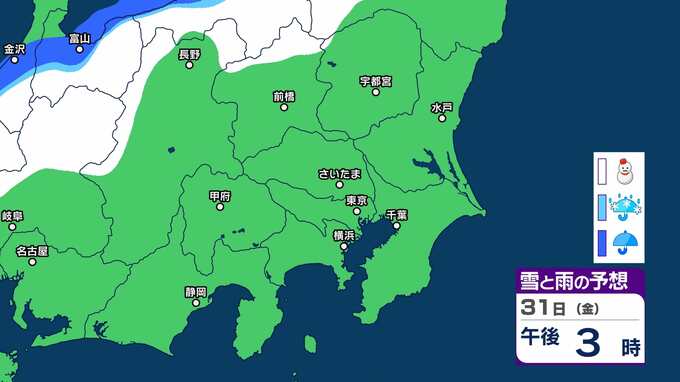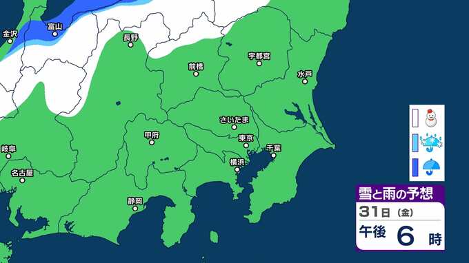 【気象情報】南岸低気圧の影響で2月2日は関東甲信は平地でも積雪か 降雪予想:関東北部平地1㎝ 関東南部平地3㎝ 甲信10㎝あす夕方まで【雪雨シミュレーション】積雪や路面の凍結による交通障害に注意・警戒 2025年1月31日(金) 16:34 国内 暮らし・マネー 31日(金)雪雨シミュレーション