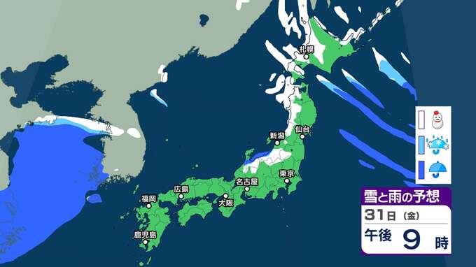 【最強寒波・午後5時更新】2月4日頃から北~東日本にかけての日本海側や西日本を中心に大雪となる所も…警報級の大雪となる可能性 交通障害、なだれに注意【雪雨シミュレーション】 2025年1月31日(金) 17:27 国内 暮らし・マネー 31日(金)雪雨シミュレーション