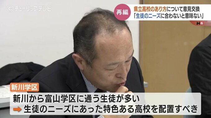 富山県の県立高校再編を巡って、県東部の新川地区では教育関係者らが2038年度までに目指す県立高校のあり方について、31日意見交換しました。