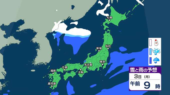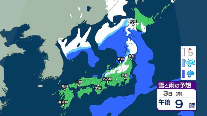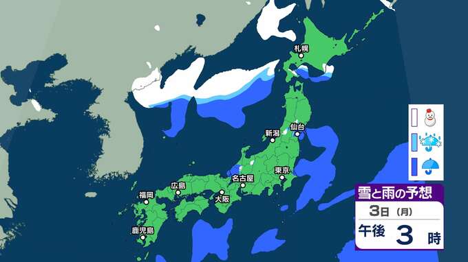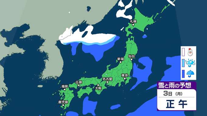 【今季一番の寒波襲来】北陸は4日頃から平地でも大雪となるおそれ 5日頃からは大荒れや警報級の大雪、海上では大しけとなる所も【雪雨シミュレーション】 2025年2月1日(土) 16:38 国内 暮らし・マネー 3日(月)雪雨シミュレーション