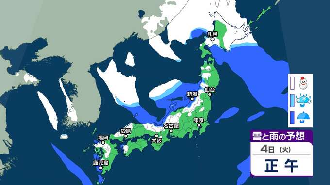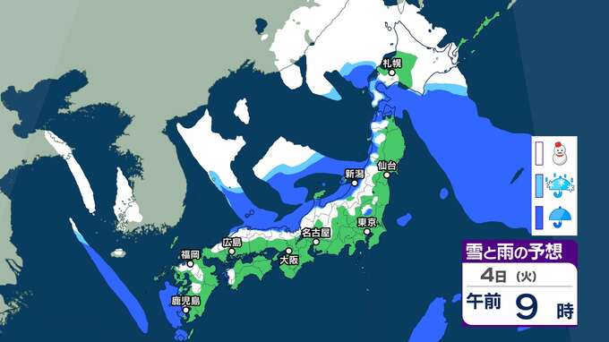 【今季一番の寒波襲来】北陸は4日頃から平地でも大雪となるおそれ 5日頃からは大荒れや警報級の大雪、海上では大しけとなる所も【雪雨シミュレーション】 2025年2月1日(土) 16:38 国内 暮らし・マネー 4日(火)雪雨シミュレーション