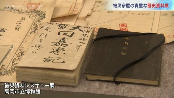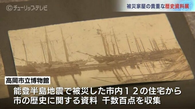 高岡市立博物館で始まった「被災資料レスキュー展」。能登半島地震で被害を受けた住宅の解体や工事が進む中、貴重な資料が失われないようにと博物館は市内12の住宅から市の歴史に関する資料、千数百点を収集し一部を展示しています。