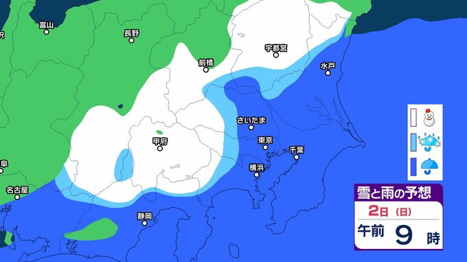 【南岸低気圧】関東甲信は、2日午前中を中心に山沿いや山地を中心に大雪に 平地でも積雪となる所も 関東北部平地2㎝ 関東南部平地3㎝ 箱根から多摩地方や秩父地方にかけて8㎝ 甲信8㎝【雪雨シミュレーション】 2025年2月2日(日) 08:20 国内 暮らし・マネー 2日(日)雪雨シミュレーション