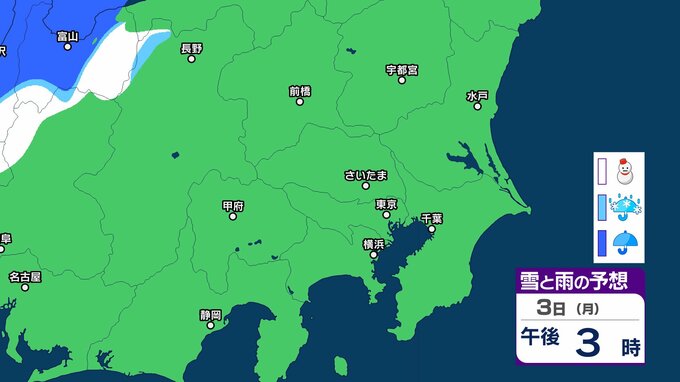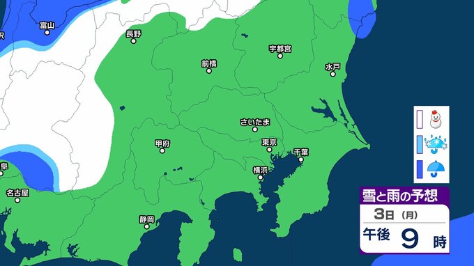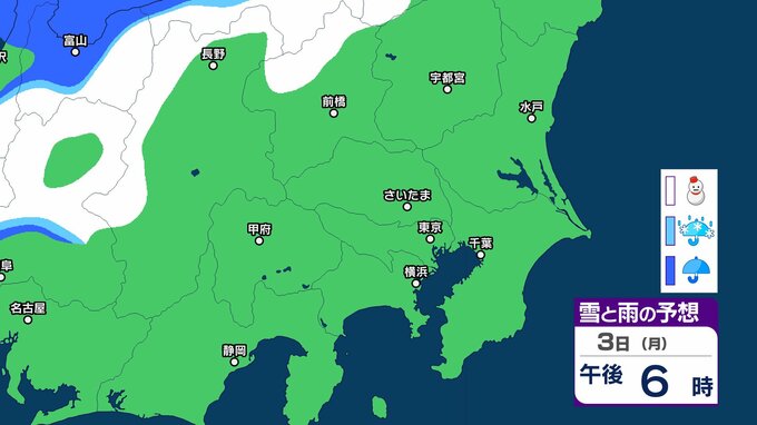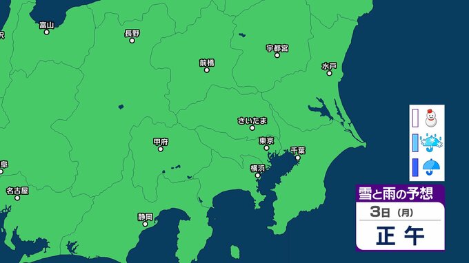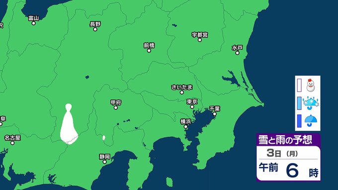 【気象情報】関東甲信地方「警報級の大雪のおそれ」なくなる 2日夕方にかけて雪や雨の降る所も【雪雨シミュレーション】 2025年2月2日(日) 13:18 国内 暮らし・マネー 3日(月)雪雨シミュレーション