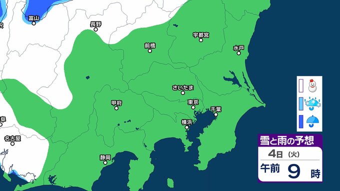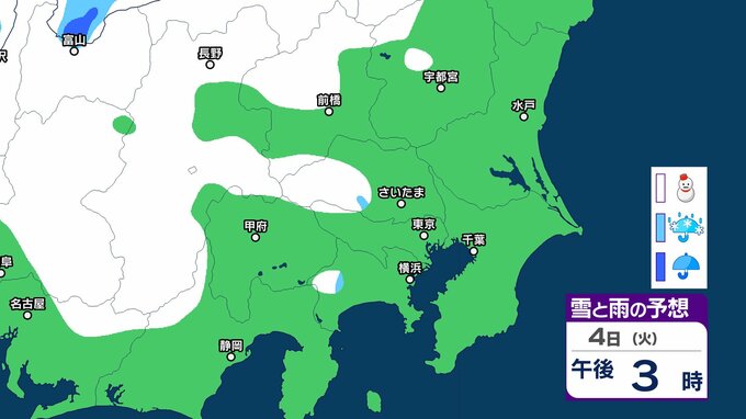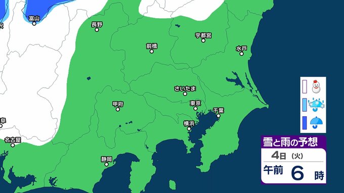 【気象情報】関東甲信地方「警報級の大雪のおそれ」なくなる 2日夕方にかけて雪や雨の降る所も【雪雨シミュレーション】 2025年2月2日(日) 13:18 国内 暮らし・マネー 4日(火)雪雨シミュレーション