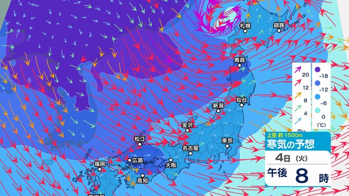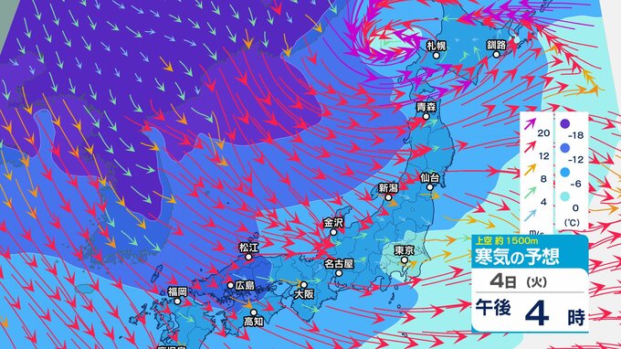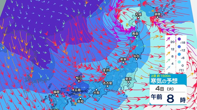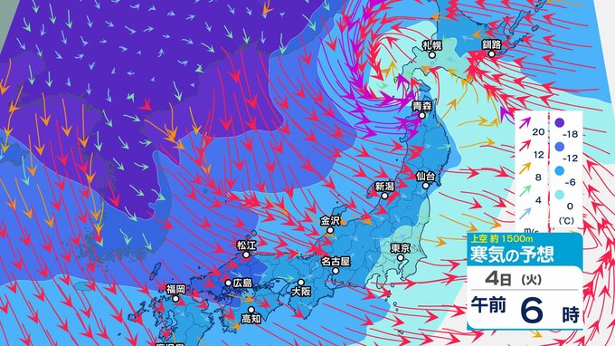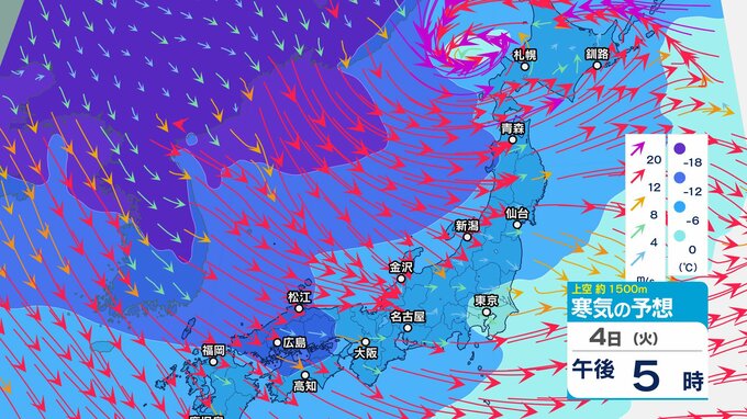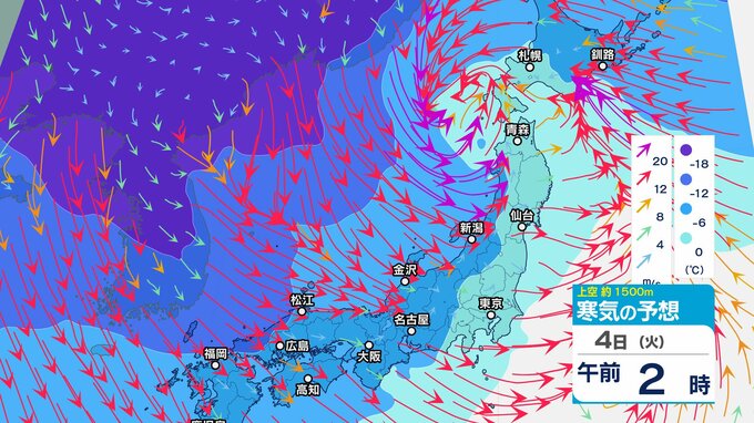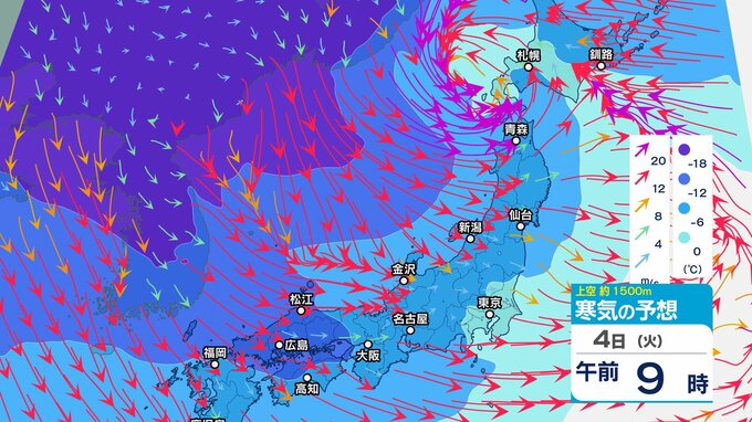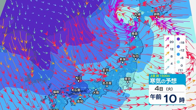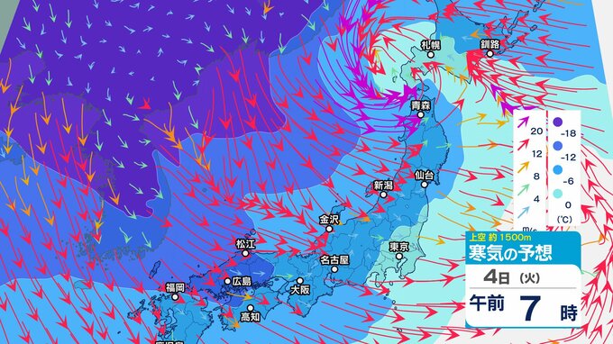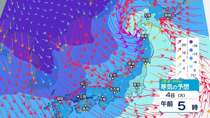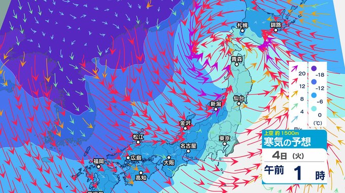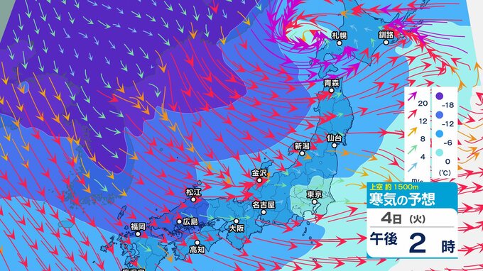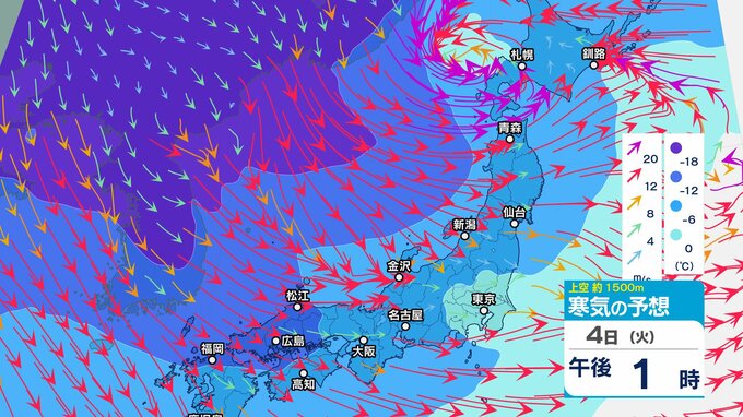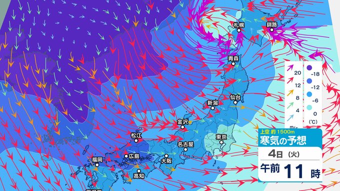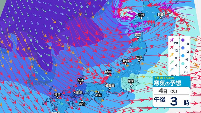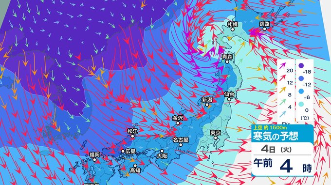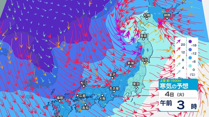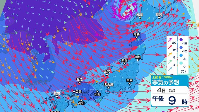 【通行止め】3日夜遅くから(時間未定)国道359号(富山・石川県境)立ち往生予防のため 県境付近10㎞【上空の寒気のシミュレーション1時間ごと】 2025年2月3日(月) 12:20 国内 暮らし・マネー 4日(火)上空1500メートルの寒気の動き 午後9時まで