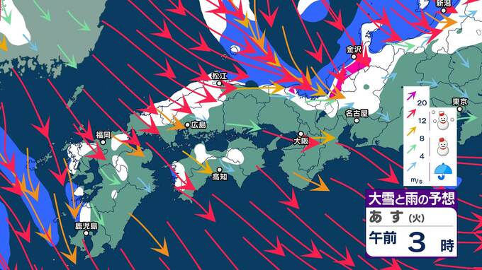 【大雪情報】警報級の大雪の可能性 中国・九州北部・南部地方は4日明け方~6日頃にかけて 四国地方は5日~6日頃にかけて【大雪と雨と風のシミュレーション】 2025年2月3日(月) 14:24 国内 暮らし・マネー 4日(火)大雪と雨と風のシミュレーション