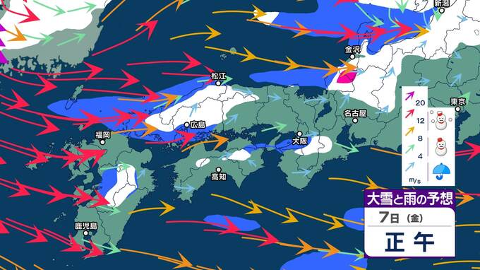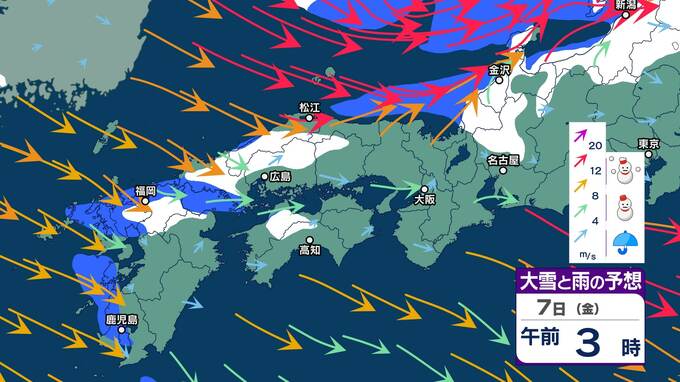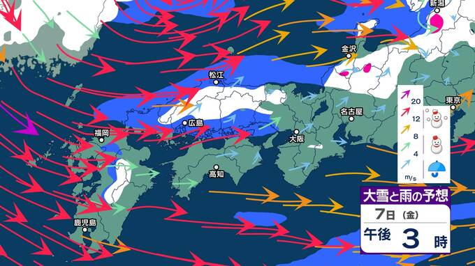 『最強寒波』過ぎても…四国・九州北部・南部・沖縄・奄美地方は9日頃から“10年に一度レベル”の「かなりの低温」になる可能性 4日からは中国・九州北部は警報級の大雪の可能性 九州南部・四国は警報級の大雪のおそれ【大雪と雨と風のシミュレーション】 2025年2月3日(月) 20:02 国内 暮らし・マネー 7日(金)大雪と雨と風のシミュレーション
