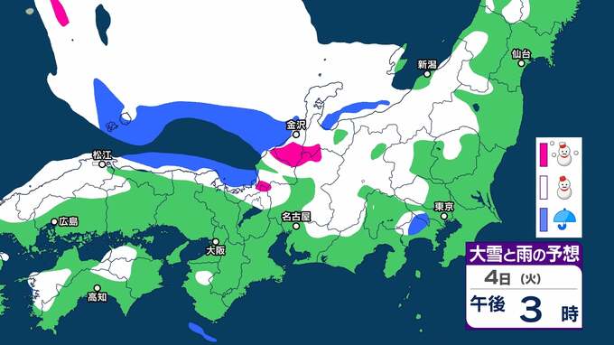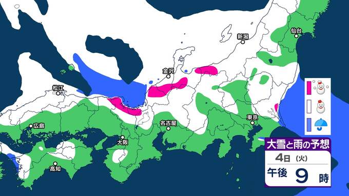 【大雪情報】近畿北部6日にかけて断続的に強い雪が降る見込み あす朝まで山地60㎝平地40㎝ 近畿中部山地30㎝の予想降雪 積雪や路面の凍結による交通障害に十分注意【大雪と雨のシミュレーション】 2025年2月4日(火) 14:00 国内 天気 4日(火)大雪と雨のシミュレーション