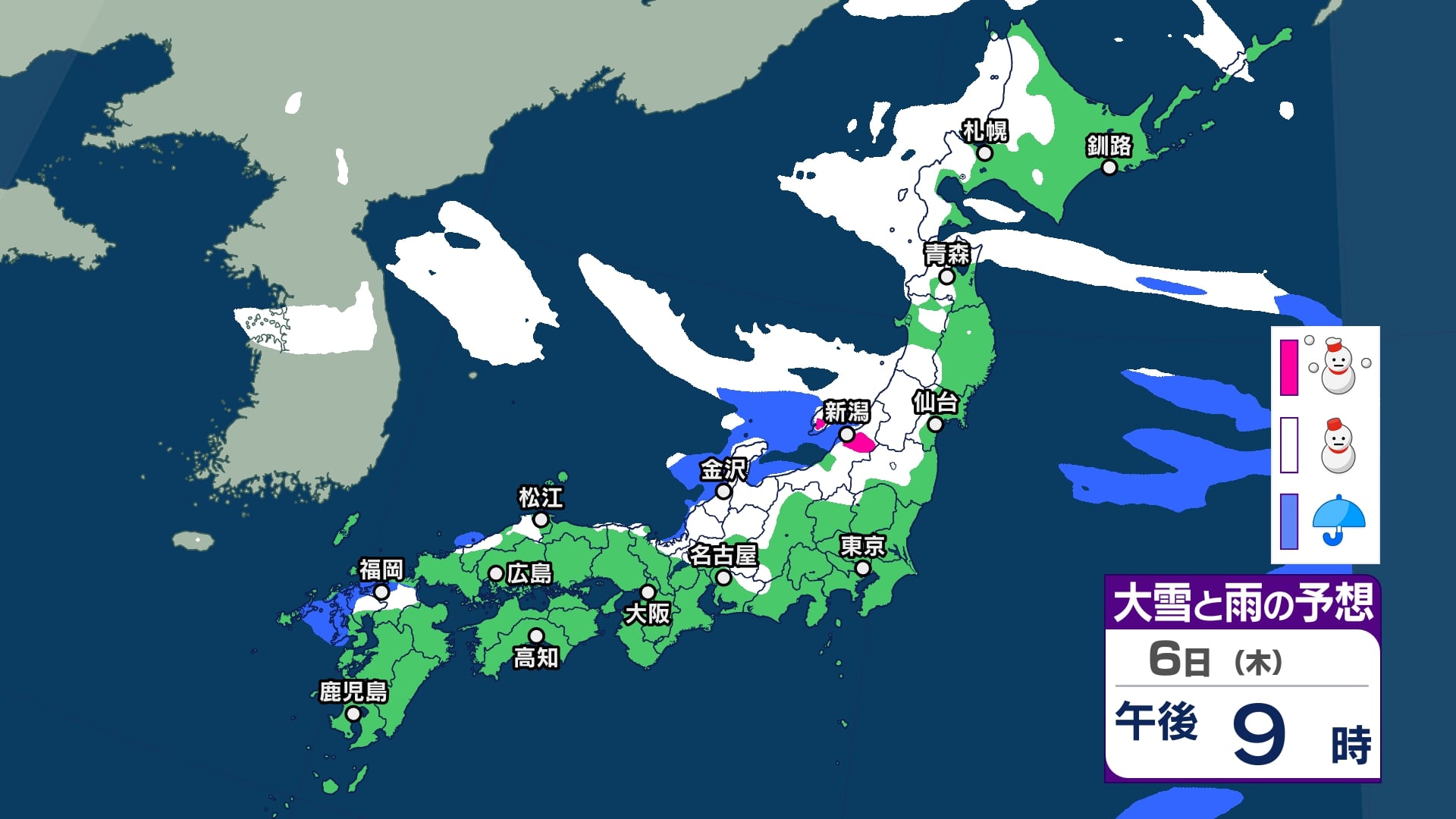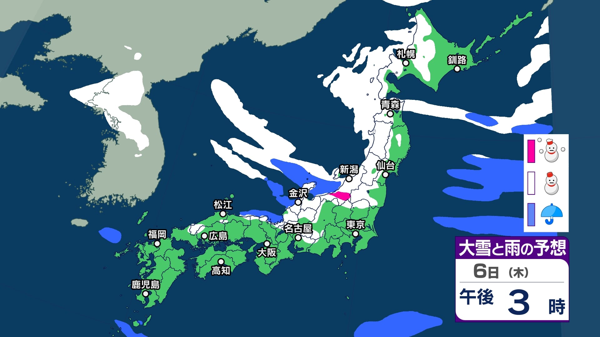 ニュースクリップ 【気象情報 5日午前7時半】居座る “嵐の使者” …北陸は6日昼前にかけて大雪による交通障害、吹雪、落雷や竜巻など激しい突風に注意・警戒【大雪と雨と風のシミュレーション】8日頃にかけて強い冬型の気圧配置続く 2025年2月5日(水) 08:00 国内 暮らし・マネー 6日(木)大雪と雨のシミュレーション