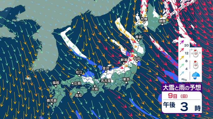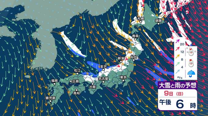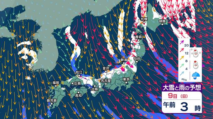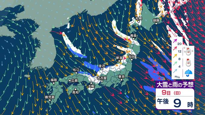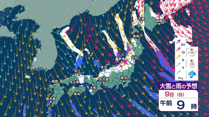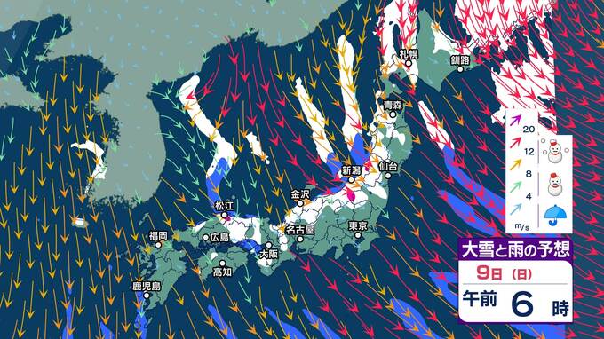 【大雪情報】北陸地方は積雪が急増 富山市猪谷で積雪121㎝(午後8時現在) 富山県では11市町村に大雪警報 警報級の大雪や高波、暴風雪となる地域が拡大するおそれ【雪と雨と風のシミュレーション】 2025年2月5日(水) 10:15 国内 暮らし・マネー 9日(水)雪と雨と風のシミュレーション