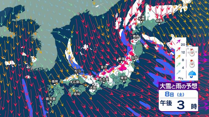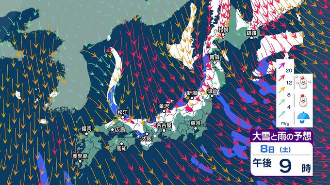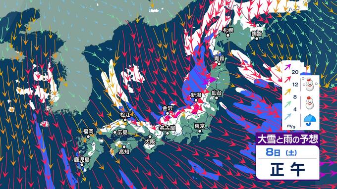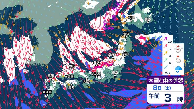 ニュースクリップ “警報級の大雪”再び…中国地方は特に7日朝~8日にかけて 四国地方は7日昼前~8日にかけて 九州北部・山口県は7日明け方から8日午前中【大雪と雨と風のシミュレーション】 2025年2月6日(木) 17:00 国内 天気 8日(土)雪と雨と風のシミュレーション