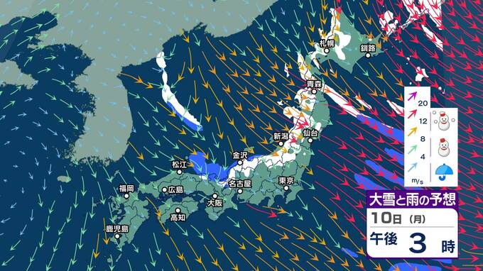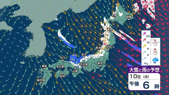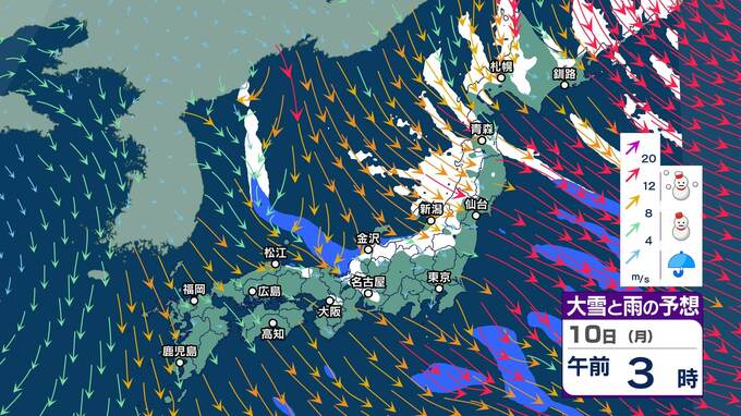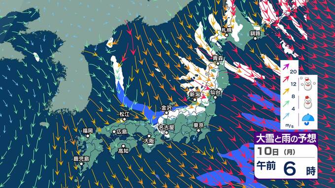 ニュースクリップ “警報級の大雪”再び…中国地方は特に7日朝~8日にかけて 四国地方は7日昼前~8日にかけて 九州北部・山口県は7日明け方から8日午前中【大雪と雨と風のシミュレーション】 2025年2月6日(木) 17:00 国内 天気 10日(月)雪と雨と風のシミュレーション