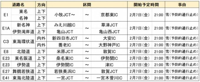 ネクスコ中日本は、日本海側の広い地域でも降雪しているとして、予防的通行止めを開始する区間以外でも広い範囲で通行止めとなる可能性があるとしています。