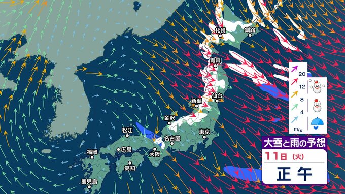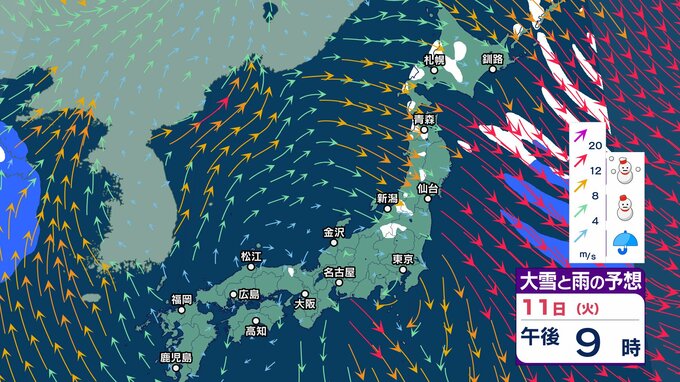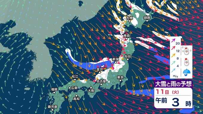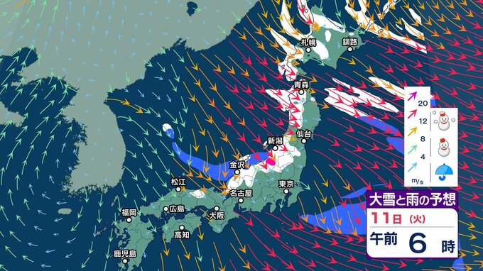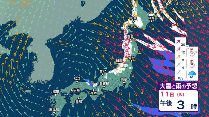 ニュースクリップ 日本海側で平年上回る積雪が続出 寒波の影響まだ残る 北陸の山沿いでは多い所で24時間で50センチ近い雪が降りそう【大雪と雨と風のシミュレーション】 2025年2月10日(月) 12:31 国内 天気 11日(火)雪と雨と風のシミュレーション