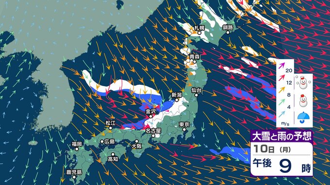 ニュースクリップ また…「10年に1度の大雪」予想 17日頃から北陸・岐阜県北部は平年の2倍以上 18日頃から長野県北部・群馬県北部は平年の1.8倍以上 東海~九州・奄美は17日頃から沖縄は18日頃から「10年に1度の低温」予想【早期天候情報】【大雪と雨と風のシミュレーション】 2025年2月10日(月) 17:30 国内 天気 10日(月)雪と雨と風のシミュレーション