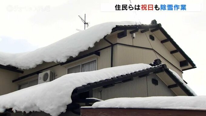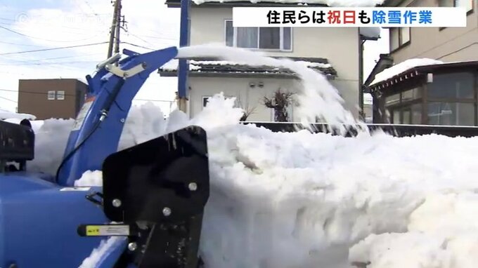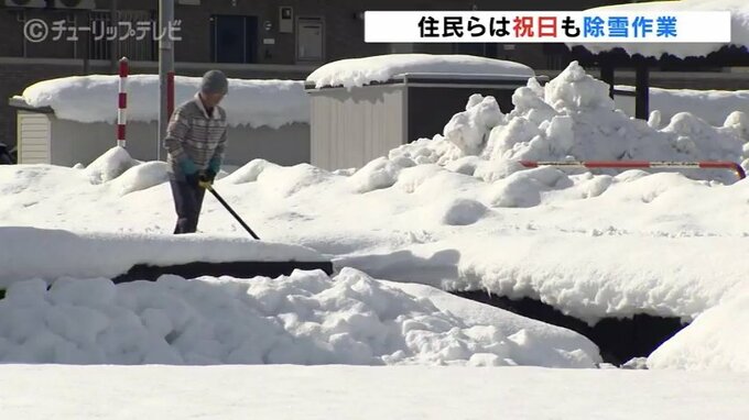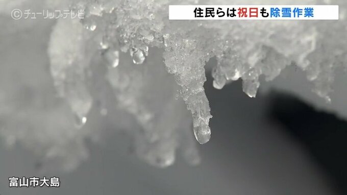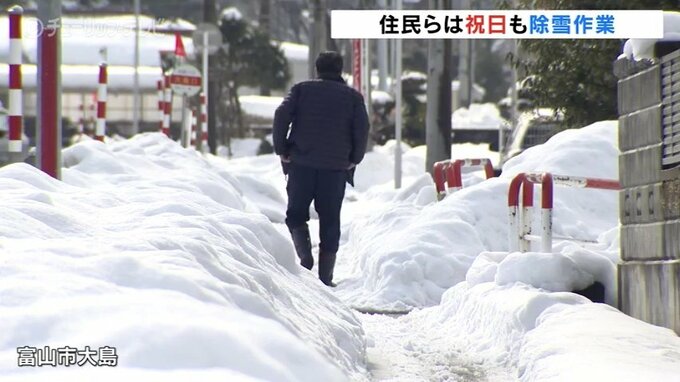 大雪のピークはすぎたもののまだ雪が多く残っている富山市大島では、祝日のきょうも住民らが除雪作業におわれていました。