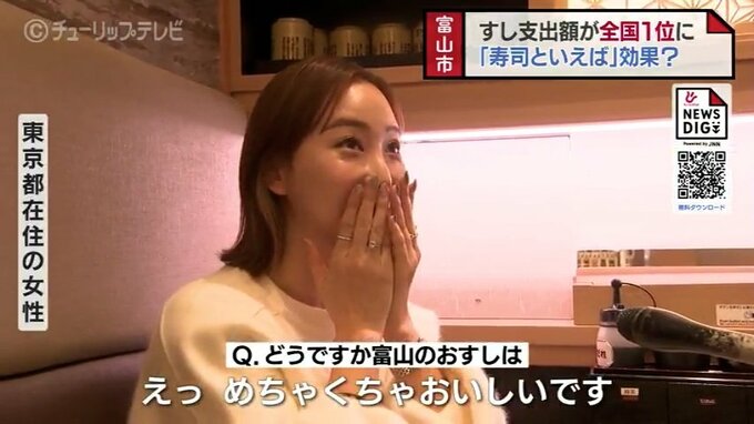 ニュースクリップ 外食で”すし”にかけた金額が初の全国1位 「寿司といえば」効果か 来店客も寿司店も歓迎の声 富山 2025年2月11日(火) 19:42 国内 外食ですしにかけた金額で、富山市が初めて全国トップとなりました。富山県がブランディングに取り組んでいる富山のすし。総務省が発表した去年1年間の家計調査で、富山市の1世帯あたりが外食ですしにかけた金額が…