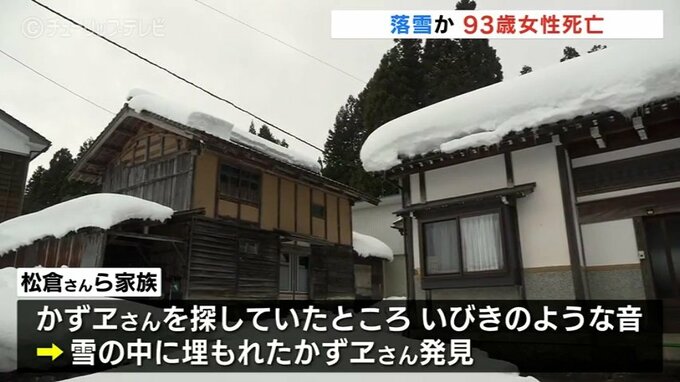 ニュースクリップ 雪の中からいびきが…落雪に巻き込まれたか 雪に埋もれた93歳女性 死亡 姿見えず家族が捜索 富山・魚津市 2025年2月12日(水) 12:34 国内 11日、富山県魚津市の住宅の敷地内で93歳の女性が雪に埋もれているのが見つかりその後、死亡が確認されました。11日午後6時25分ごろ、富山県魚津市長引野の教員、松倉英幸さんの住宅の敷地内で、松倉さんの母のか…