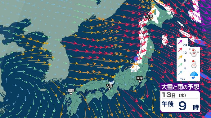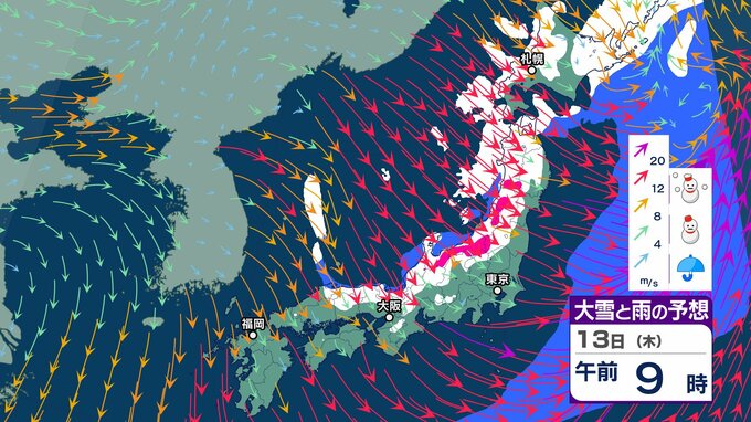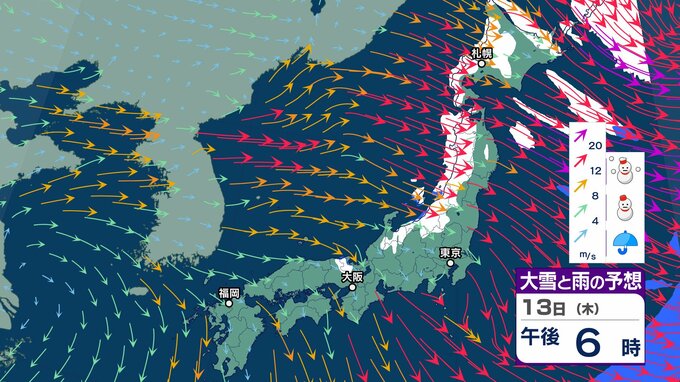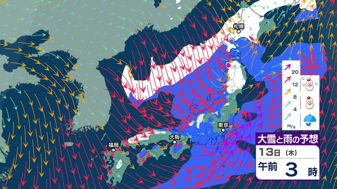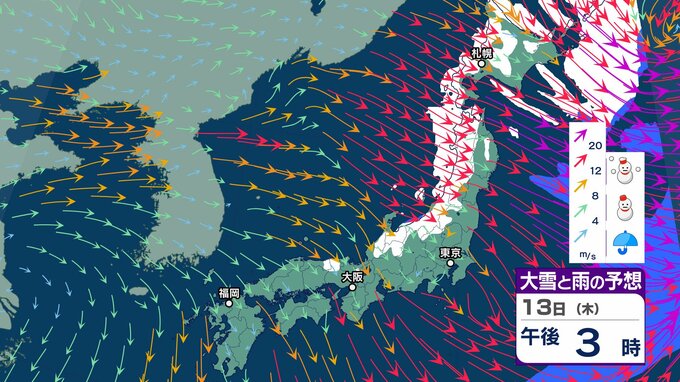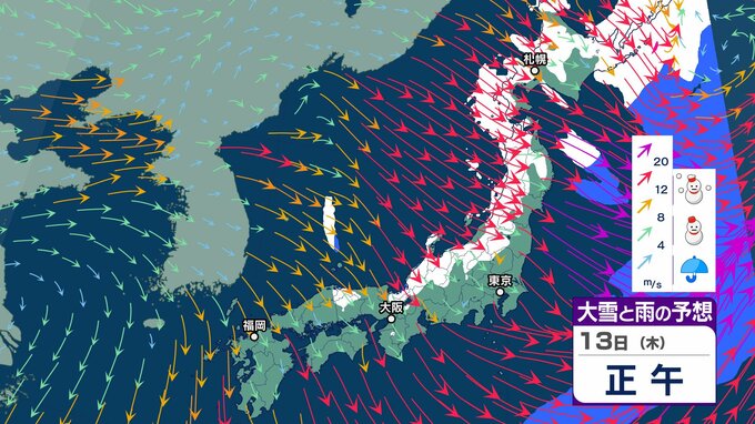 ニュースクリップ 強烈寒波「10年に一度程度」の大雪が今月2度目の可能性「北陸地方」は17日頃から JPCZの強雪に厳重警戒【大雪と雨と風のシミュレーション】 2025年2月12日(水) 15:30 国内 天気 13日(木)雪と雨と風のシミュレーション