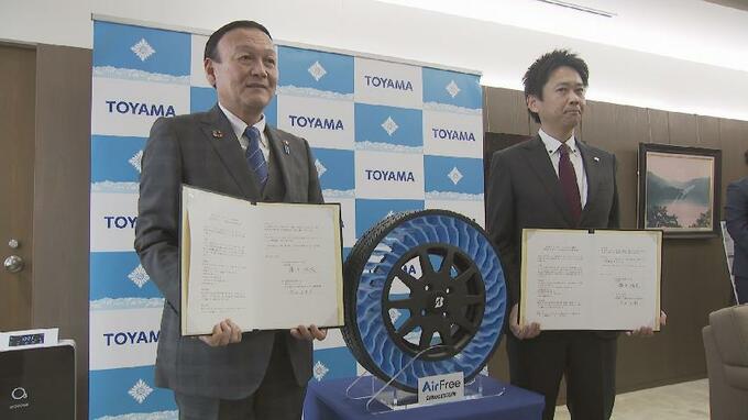 ニュースクリップ パンクの心配なし …空気のいらない “次世代タイヤ” で低速の地域バス実証実験へ 富山市とブリヂストンが連携協定 2025年2月13日(木) 13:16 国内 富山市は、低速で公道を走る電気自動車「グリーンスローモビリティ」の運行事業で、空気のいらない次世代のタイヤを使用する連携協定を大手タイヤメーカー「ブリヂストン」と結びました。グリーンスローモビリティ…