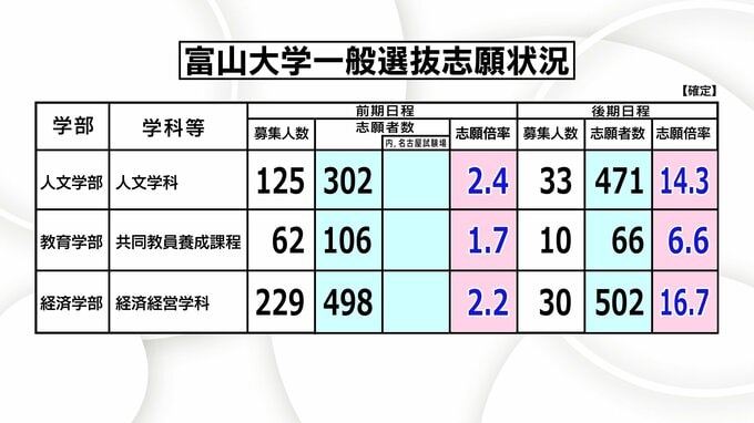 富山大学 2025年度志願状況【確定】医学部医学科は8.0倍【全学部・学科等一覧リスト】