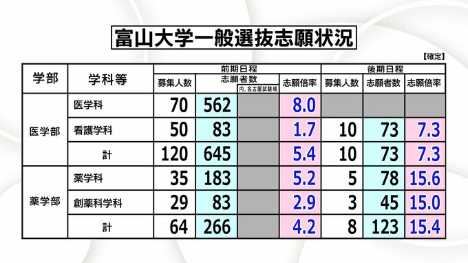 富山大学 2025年度志願状況【確定】医学部医学科は8.0倍【全学部・学科等一覧リスト】