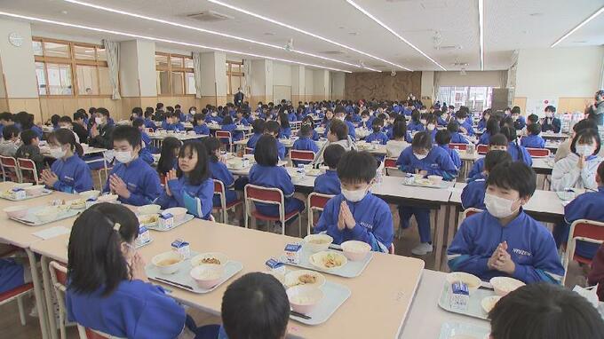 給食は富山県産米に親しんでもらおうと、JA全農とやまが初めて企画したもので、給食に使った「富富富」は入善高校農業科の生徒が去年、栽培・収穫しました。