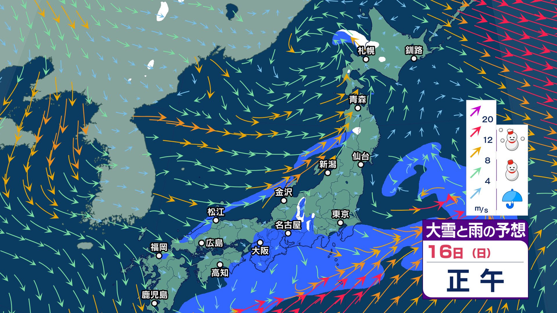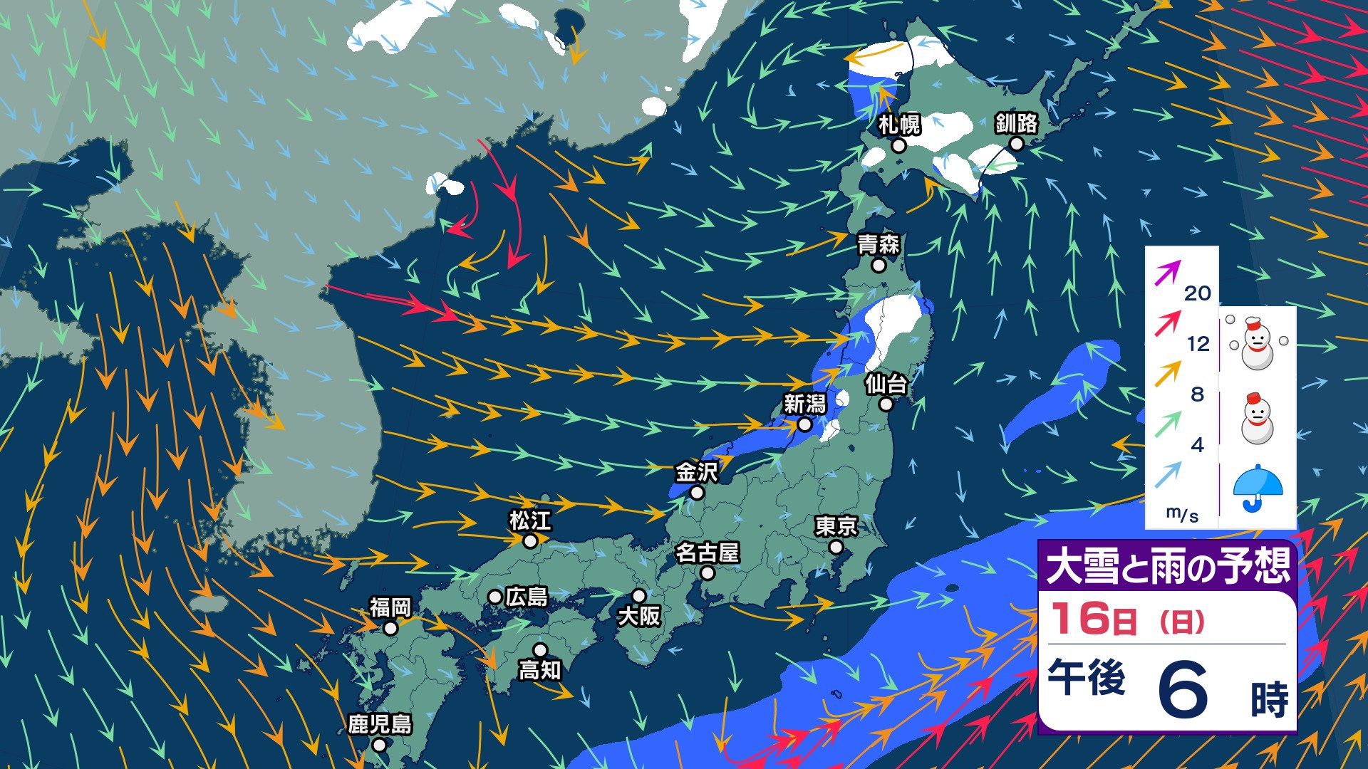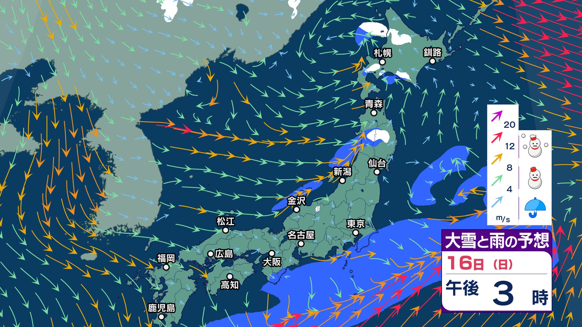 ニュースクリップ 再び強烈寒波が襲来 数日間居座り長期戦に…来週18日頃から日本海側では警報級の大雪のおそれ 富山は19日か【大雪と雨と風のシミュレーション】 2025年2月14日(金) 19:15 国内 暮らし・マネー 16日 大雪と雨と風のシミュレーション