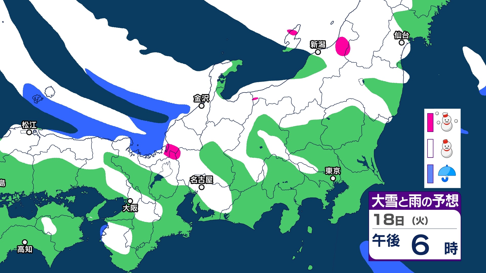 【大雪情報】岐阜県は平地でも大雪に今夜から『警報級の大雪』となる可能性 三重県でも大雪となる所が…交通障害に注意・警戒【雪と雨のシミュレーション】 2025年2月17日(月) 15:00 国内 暮らし・マネー 18日(火)雪と雨のシミュレーション
