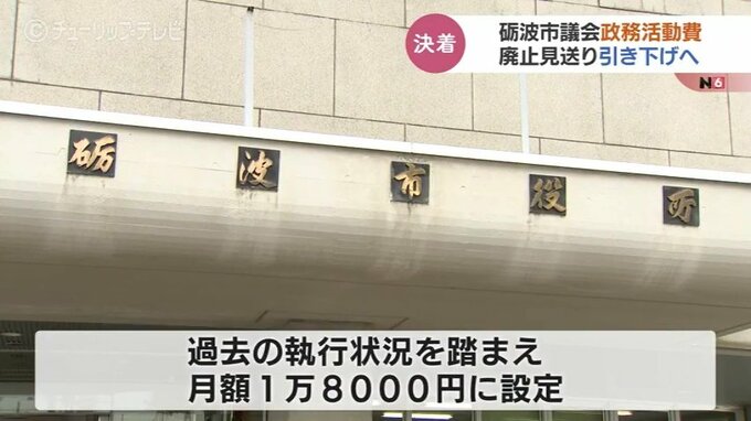 砺波市議会の政務活動費が17日、1万8000円に減額する方向で決着しました。政務活動費を巡っては市議会が廃止を提案していましたが、砺波市の審議会が廃止を見送るよう答申していました。