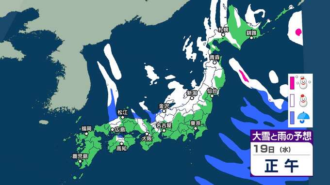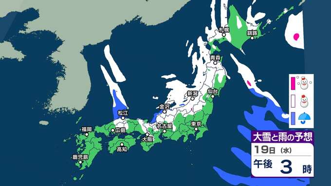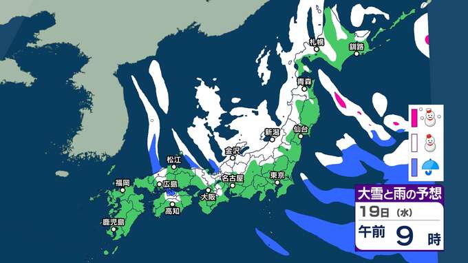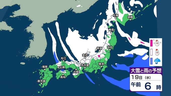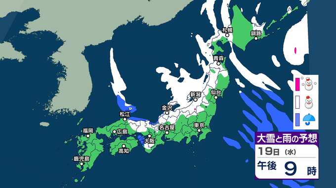 【大雪情報】北日本~西日本の日本海側を中心に大雪に 東北・北陸70㎝ 関東甲信・東海50㎝ 近畿40㎝の降雪予想(18日夕方までの24時間)【’雪と雨のシミュレーション】交通障害に注意・警戒を 2025年2月17日(月) 20:00 国内 暮らし・マネー 19日(水)雪と雨のシミュレーション