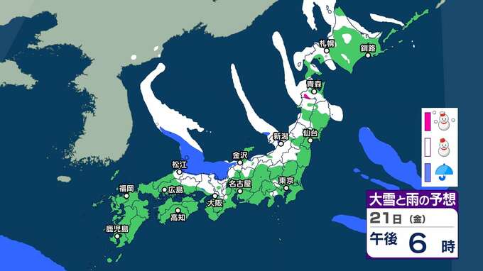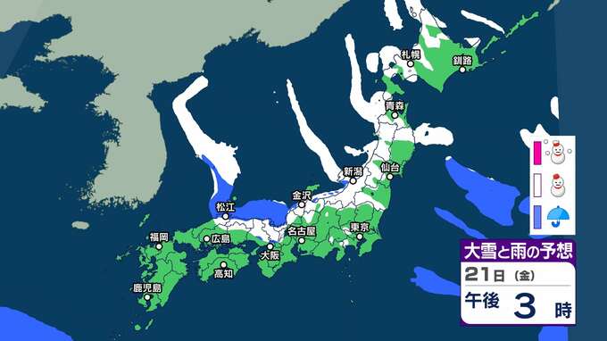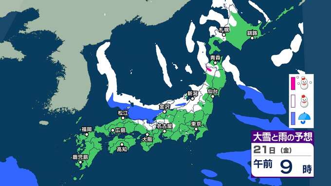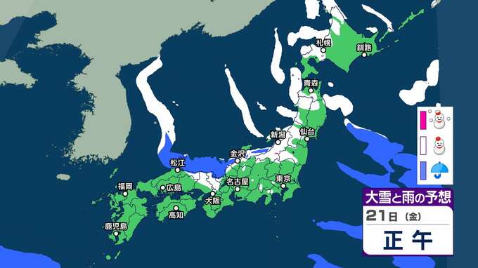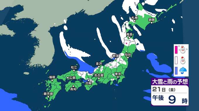 【大雪情報】北日本~西日本の日本海側を中心に大雪に 東北・北陸70㎝ 関東甲信・東海50㎝ 近畿40㎝の降雪予想(18日夕方までの24時間)【’雪と雨のシミュレーション】交通障害に注意・警戒を 2025年2月17日(月) 20:00 国内 暮らし・マネー 21日(金)雪と雨のシミュレーション
