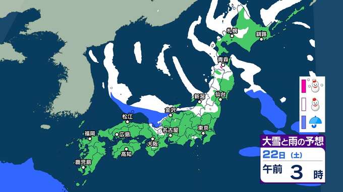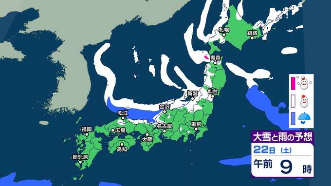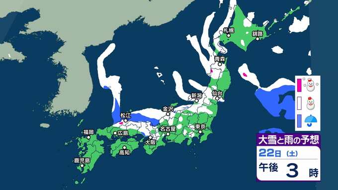 【大雪情報】北日本~西日本の日本海側を中心に大雪に 東北・北陸70㎝ 関東甲信・東海50㎝ 近畿40㎝の降雪予想(18日夕方までの24時間)【’雪と雨のシミュレーション】交通障害に注意・警戒を 2025年2月17日(月) 20:00 国内 暮らし・マネー 22日(土)雪と雨のシミュレーション
