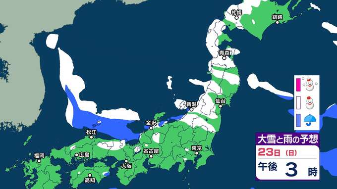 居座る『S級寒波』の影響で身を切る寒さに 日本海側は除雪が追いつかないほどの雪になる所も 大雪に警戒【雪と雨のシミュレーション】 2025年2月18日(火) 18:00 国内 天気 23日(日)雪と雨のシミュレーション