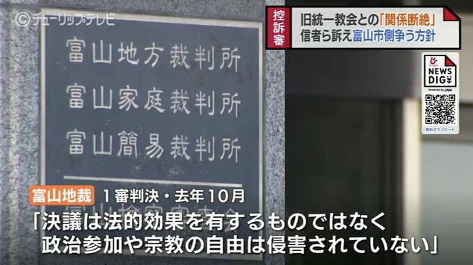 一審の富山地裁は2024年10月、「決議は法的効果を有するものではなく、政治参加や宗教の自由は侵害されていない」などとして原告の請求を棄却。原告側は判決を不服として名古屋高裁金沢支部に控訴していました。