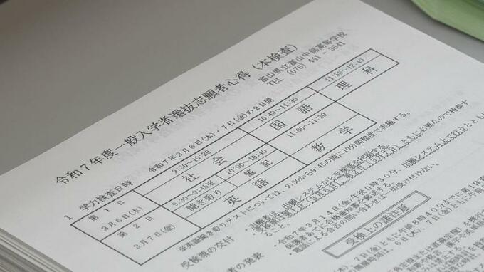 富山県の県立高校全日制課程の一般入試の受け付けが20日から県内の各高校で始まり、富山中部高校では受験生の必要書類を持った中学校の教員が次々と訪れました。