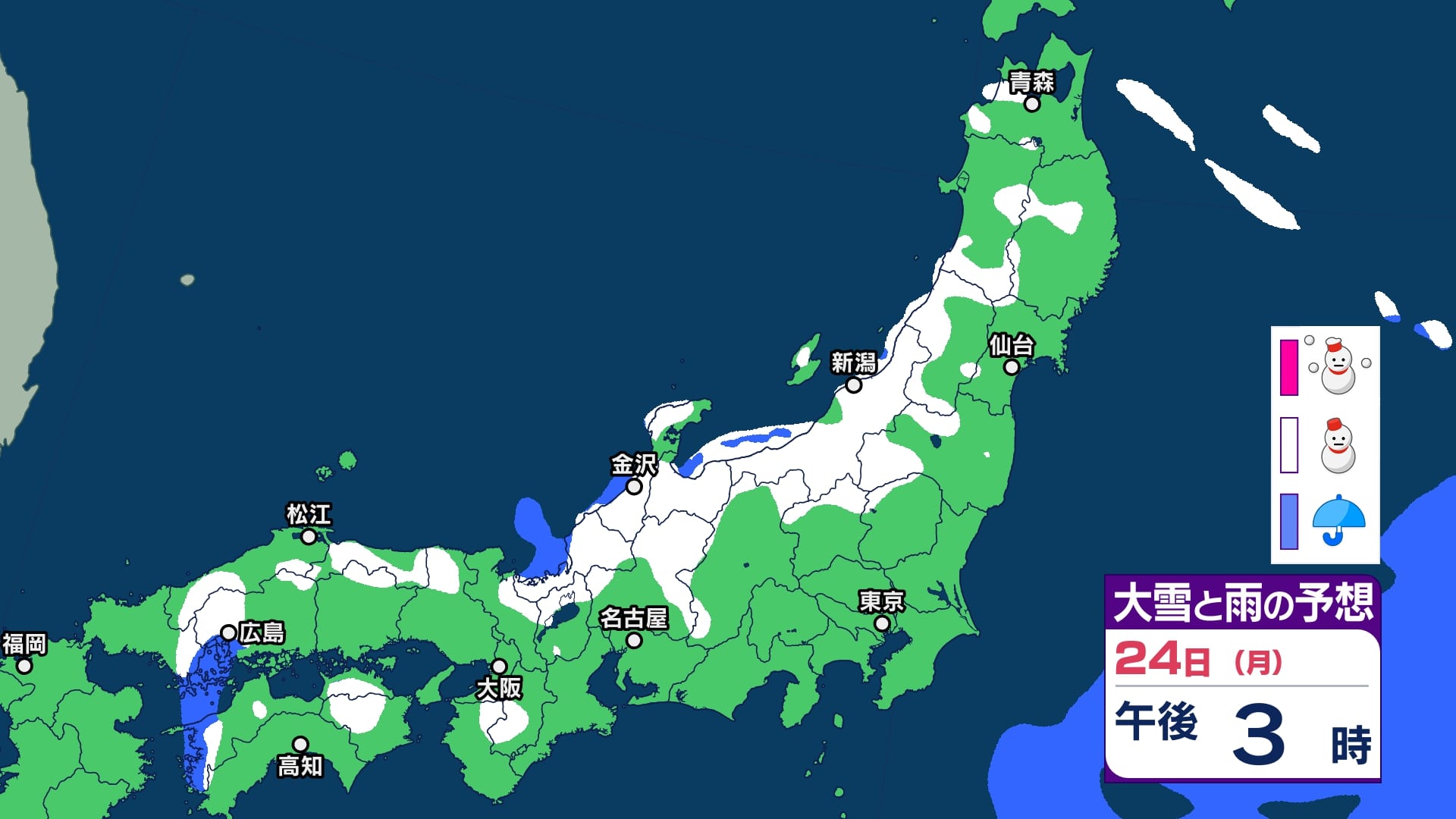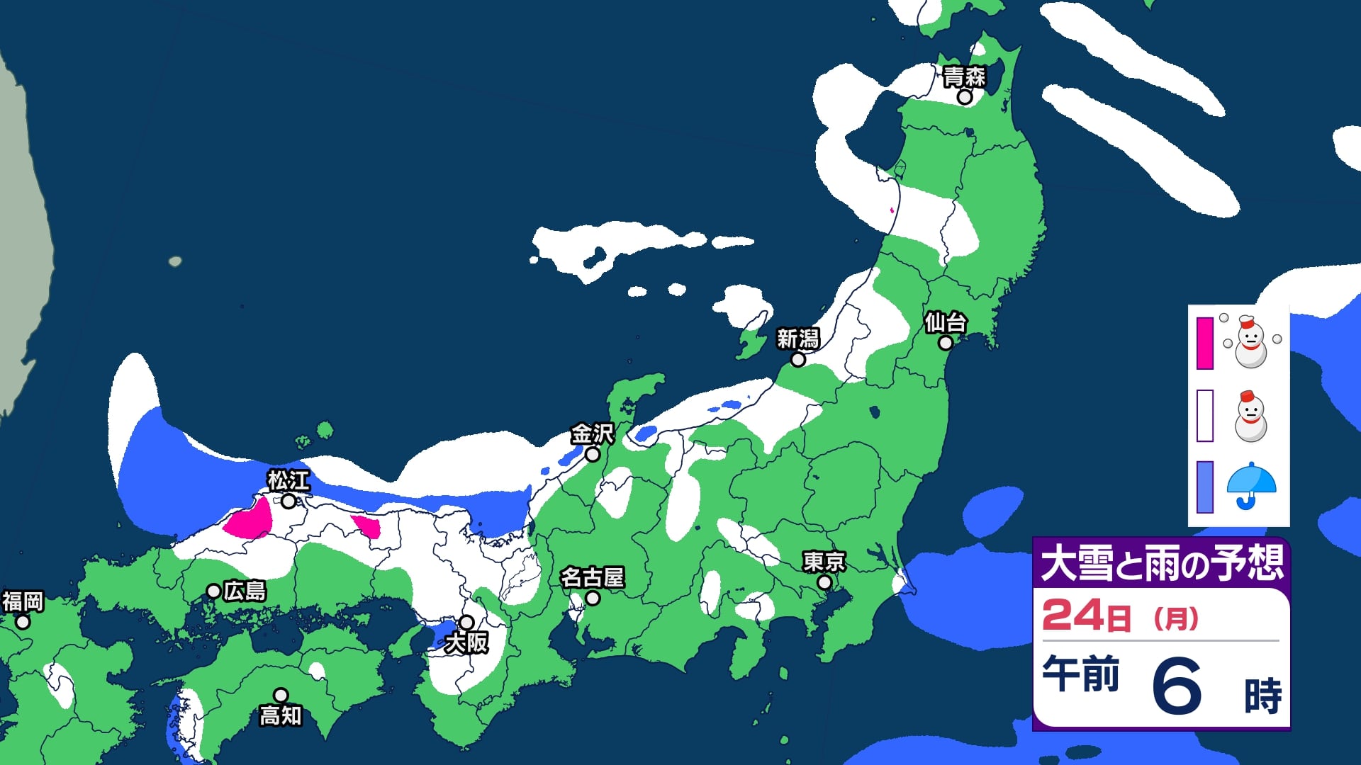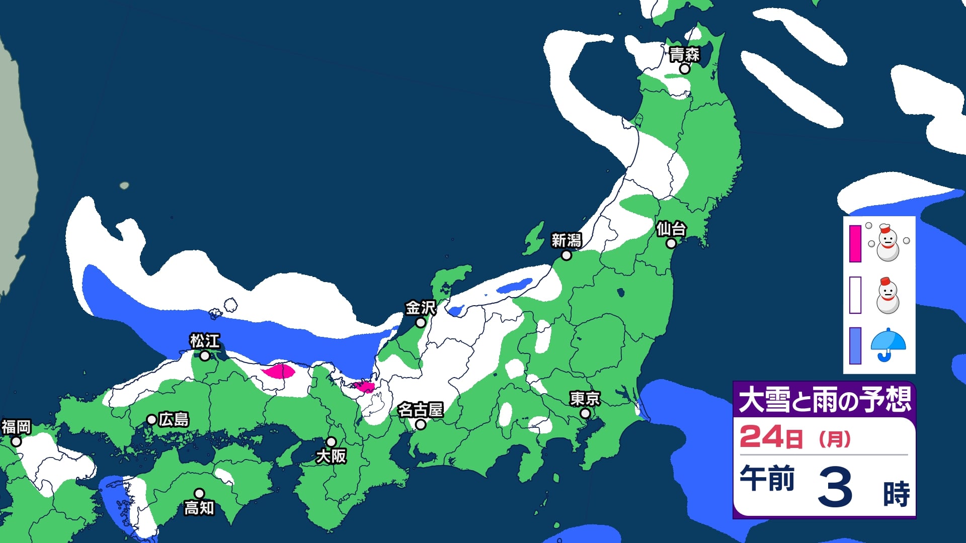 ニュースクリップ 【極寒情報 20日午後5時】北陸は23日にかけ大雪による交通障害に警戒…上空5500メートルに氷点下33℃以下の “嵐の使者” 寒気が流れ込み断続的に強まる【雪と雨のシミュレーション】 2025年2月20日(木) 17:05 国内 天気 24日(月)大雪と雨のシミュレーション