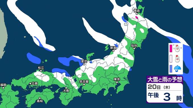 ニュースクリップ 石川・秋田・青森・北海道は21日までに「大雪警報」が出る可能性が…富山・福井などにも「早期注意情報」大雪となる所ある見込み【雪と雨のシミュレーション】 2025年2月20日(木) 17:45 国内 天気 20日(木)雪と雨のシミュレーション