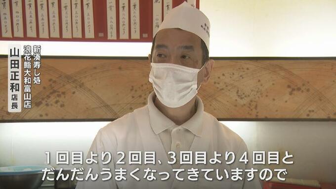 「(富山に)来てみたらお寿司を県全体で盛り上げているという印象を感じた。本当に富山湾というすばらしい海があって、そこで獲れる新鮮な魚が本当においしいのでお客さんを笑顔にできるような仕事をやっていきたい」