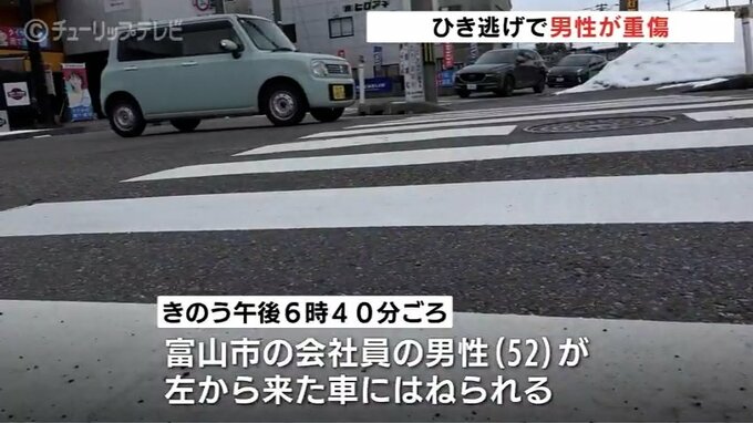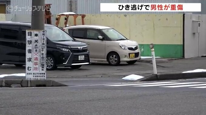 20日夕方、歩行者の男性が富山市の交差点で車にはねられ車は現場からそのまま逃走し、警察はひき逃げ事件として逃げた車の行方を追っています。
