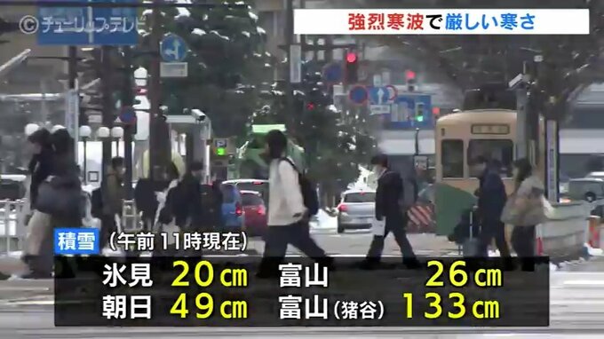 この強烈な寒波で21日朝も富山県内すべての観測地点で氷点下2℃以下を観測するなど厳しい寒さが続いています。